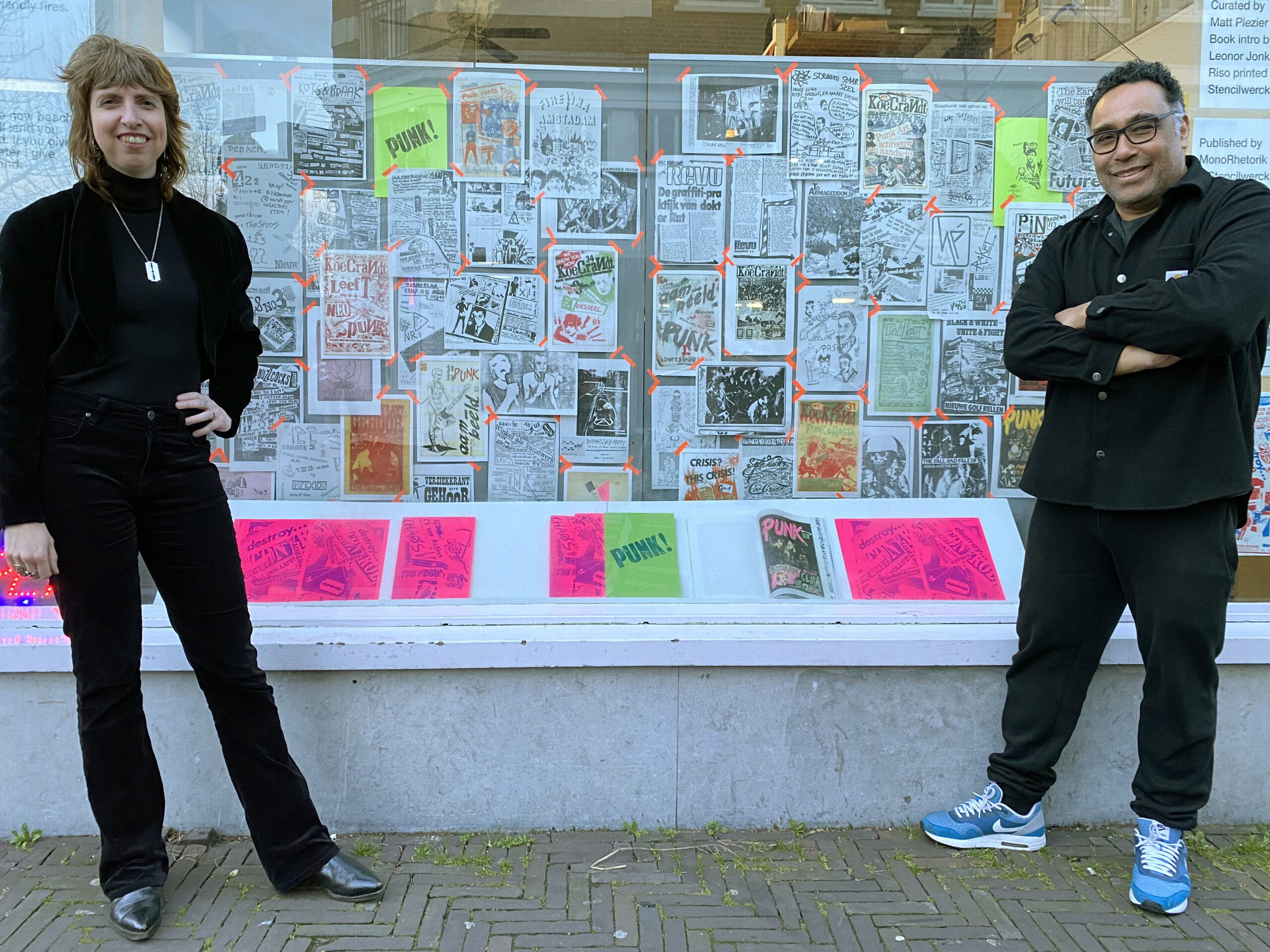 As part of the daytime programming of Grauzone festival we installed a window at Fried Records (The Hague) and did a presentation of the book: Another Rotten Punk Book. Leonor Jonker (pictured left), who wrote the new intro for the book, also spinned a few classic punk tune records during the opening.